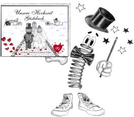 In deinem Bekanntenkreis haben sich die Richtigen gefunden und machen jetzt Nägel mit Köpfen? Oh, wie schön! Möglicherweise hast du selbst deinen Freund oder deine Freundin die Frage aller Fragen gestellt und er oder sie hat tatsächlich JA gesagt? Noch besser! Das wird bestimmt eine grandiose Feier, an die ihr euch noch in vielen Jahren erinnern werdet. In beiden Fällen ist dieses kleine Büchlein bestimmt nicht die schlechteste Idee. Seht es als eine Art Zeitkapsel, die euch auch dann noch an eure Hochzeits-Gäste erinnert, wenn ihr in Würde ergraut vom Seniorensport kommt. Ein etwas anderes Gästebuch haben wir da zusammengestellt. Es ist lustig, auch etwas frech und schenkt nicht nur beim Eintragen, sondern auch später beim Lesen viel Freude und vielleicht sogar ein Tränchen.